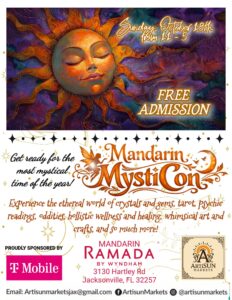 Alexander Nemo and Sultania Spirit will be offering tarot, oracle, aura readings and messages from spirit. Mysticon offers hollistic vendors, mystical tools and unique oddities! Come on down from 11am-5pm to have a great time and see what’s in the cards for you!