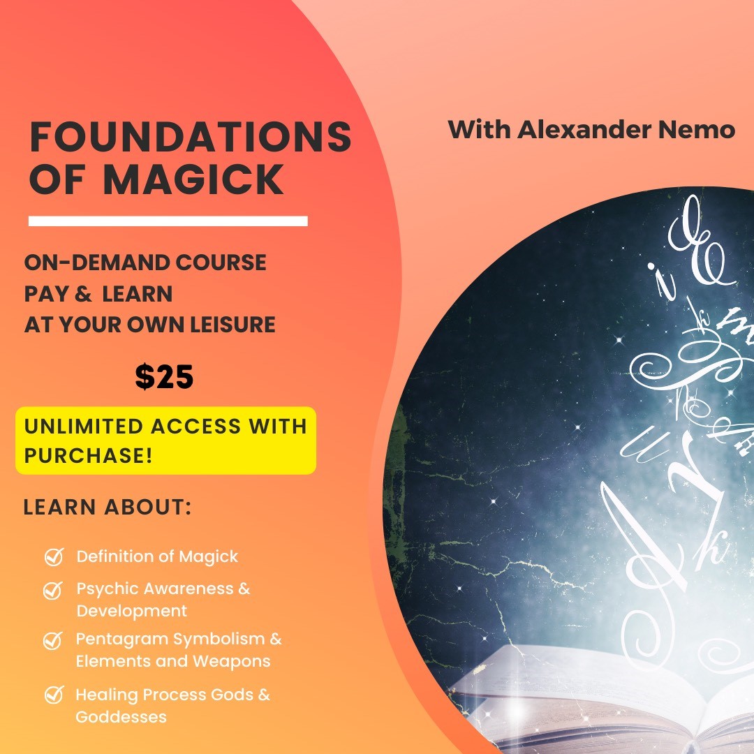 all Metaphysical and Magickal Classes listed Below are offered by Alexander Nemo. book time for a personal class, a group, virtual class or in-Person.